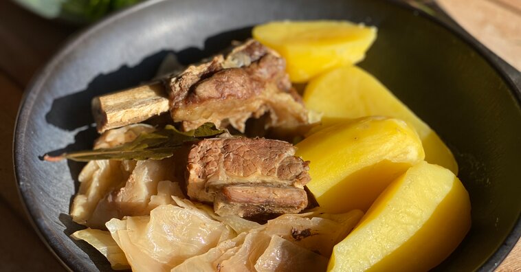 In jungen Jahren hatte ich einmal Freunde zu Besuch aus Norwegen und sie haben uns zum Dank für die Übernachtungsgelegenheit das norwegische Nationalgericht Fårikål, also "Lamm-im-Kohl" gekocht: Lammfleisch mit Kraut in einem Topf. Ach hat das gut geschmeckt und war vor allem so einfach zu kochen, dass ich es unzählige Mal nachgemacht habe. Doch da ich mir als Student kein Lammfleisch leisten konnte, musste eine Schweinebauch herhalten.